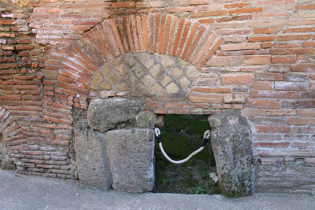 VI.10 Herculaneum, June 2005. Praefurnium in south wall of baths rear corridor. Photo courtesy of Nicolas Monteix.