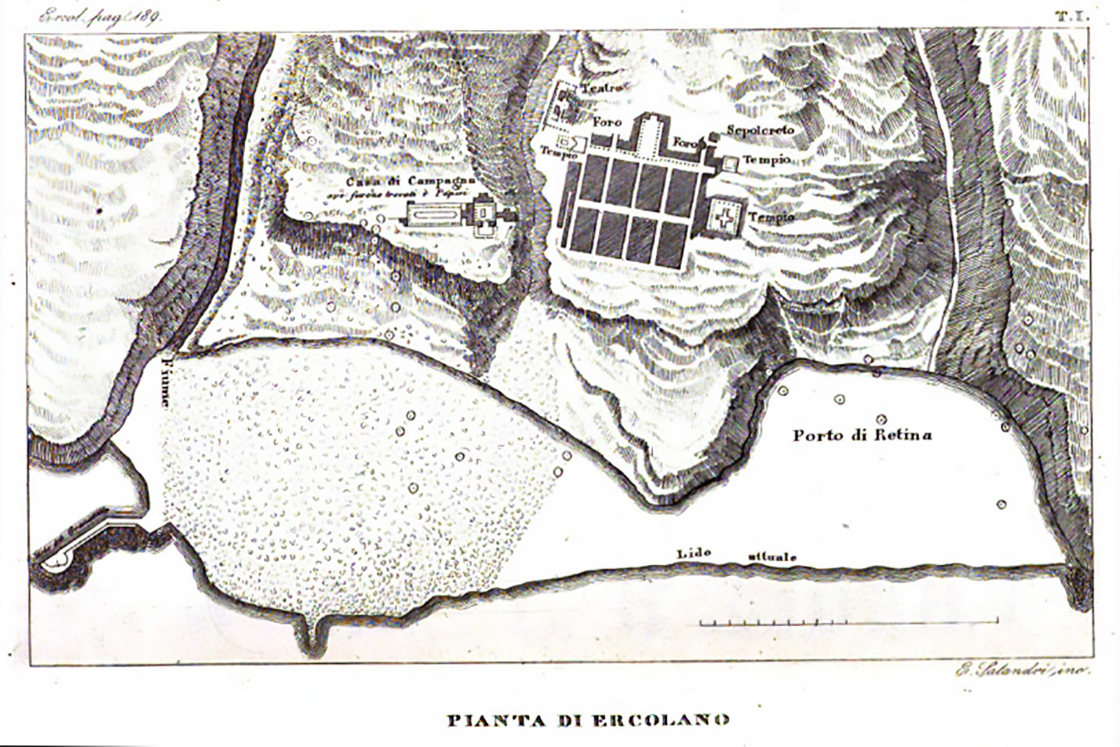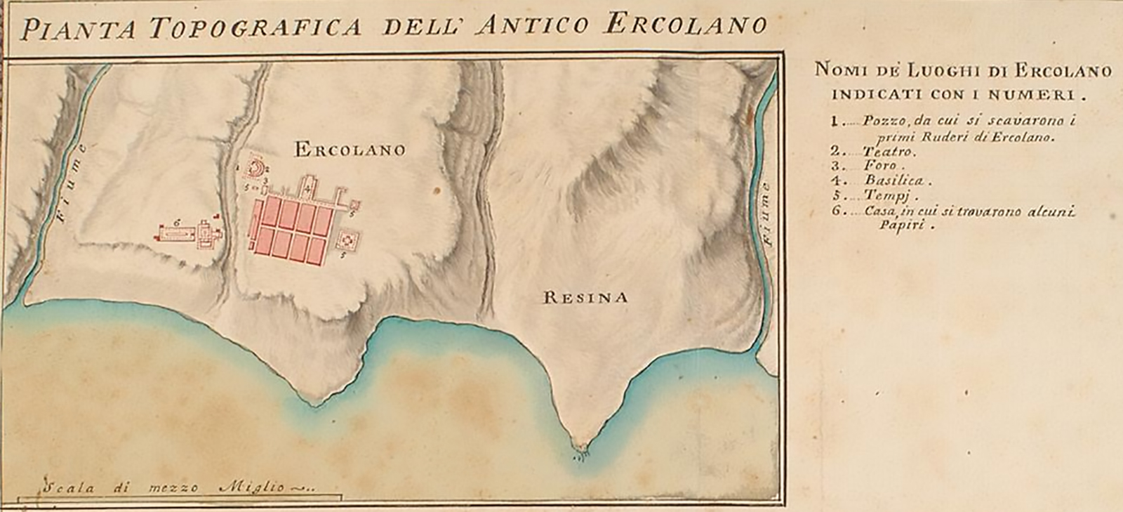 Plan of Herculaneum area by P. and F. La Vega, published in 1797 by C. M. Rosini in Dissertationis Isagogicae ad Hercvlanensivm Volvminvm Explanationem: Pars Prima.