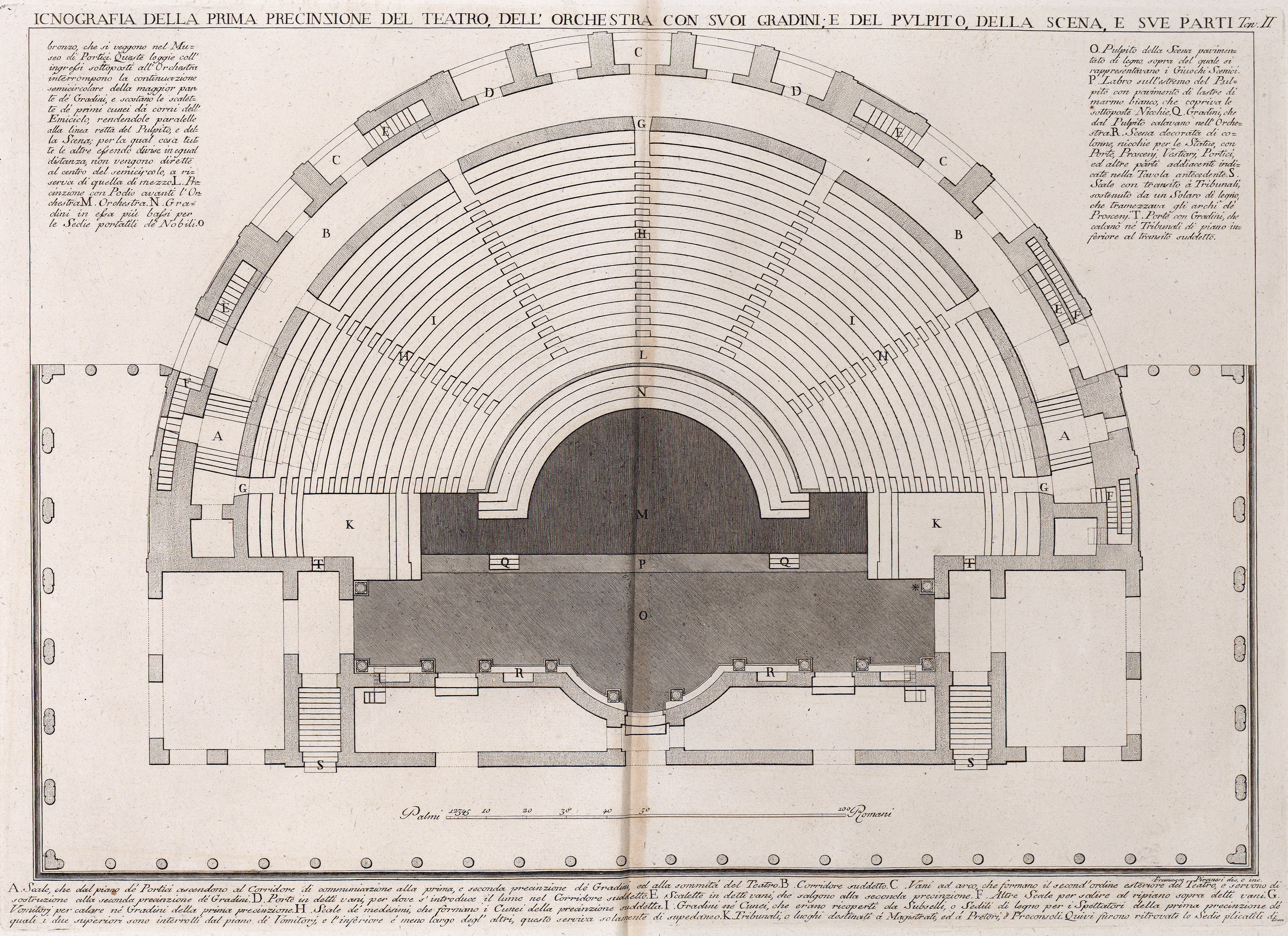 Plan of the theatre at Herculaneum, second of three by Francesco Piranesi published in 1783 in Teatro di Ercolano, Tav II.