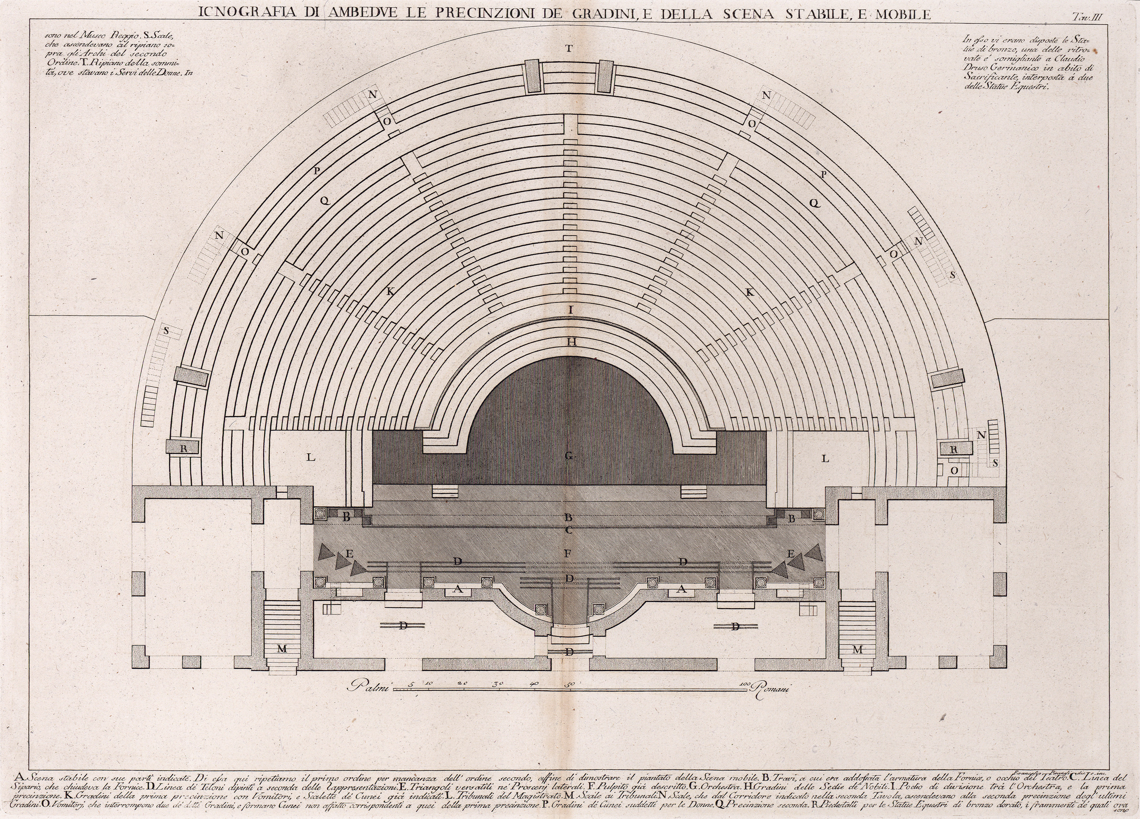 Iconografia della prima precinzione del teatro, dell' orchestra con suoi gradini; e del pulpito, della scena, e sue parti