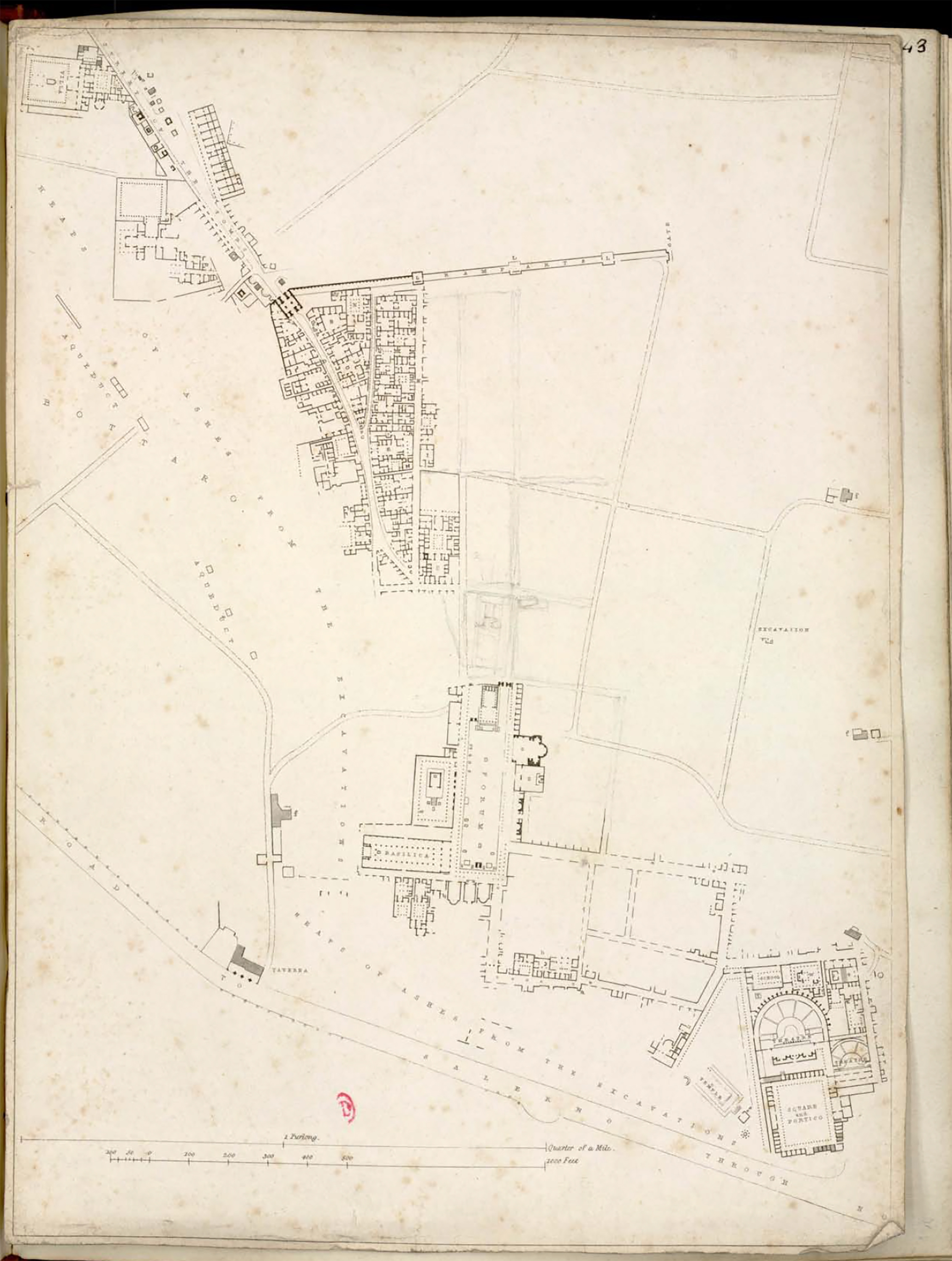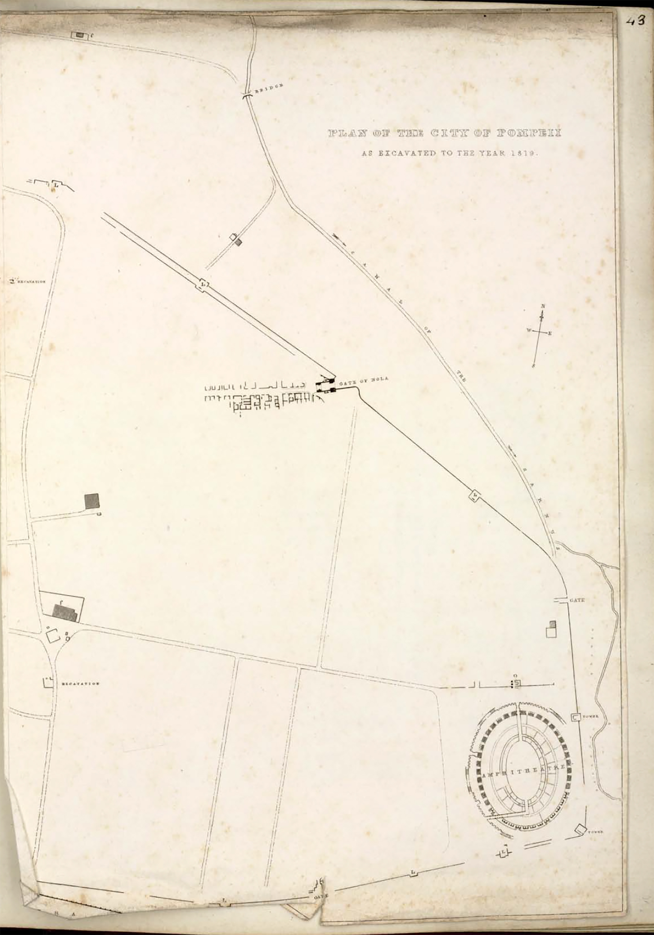 Right part of plan from Gell, W. Pompeii unpublished [Dessins de l'édition de 1832 donnant le résultat des fouilles post 1819 (?)] vol II, pl. 43 recto. Bibliothèque de l'Institut National d'Histoire de l'Art.