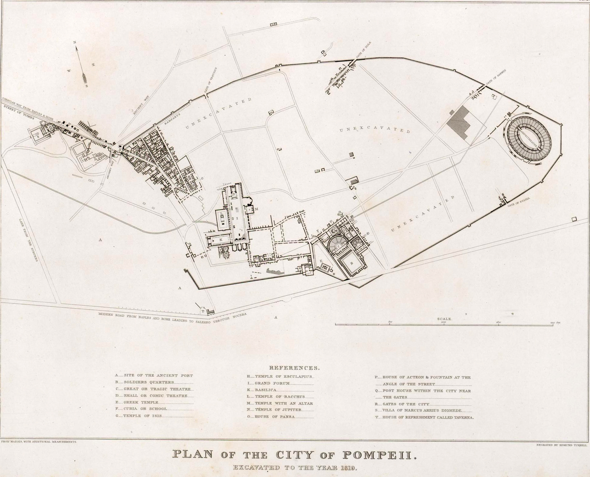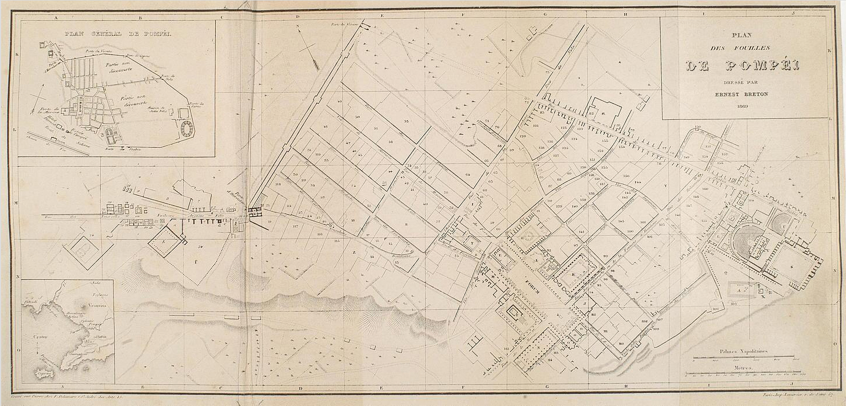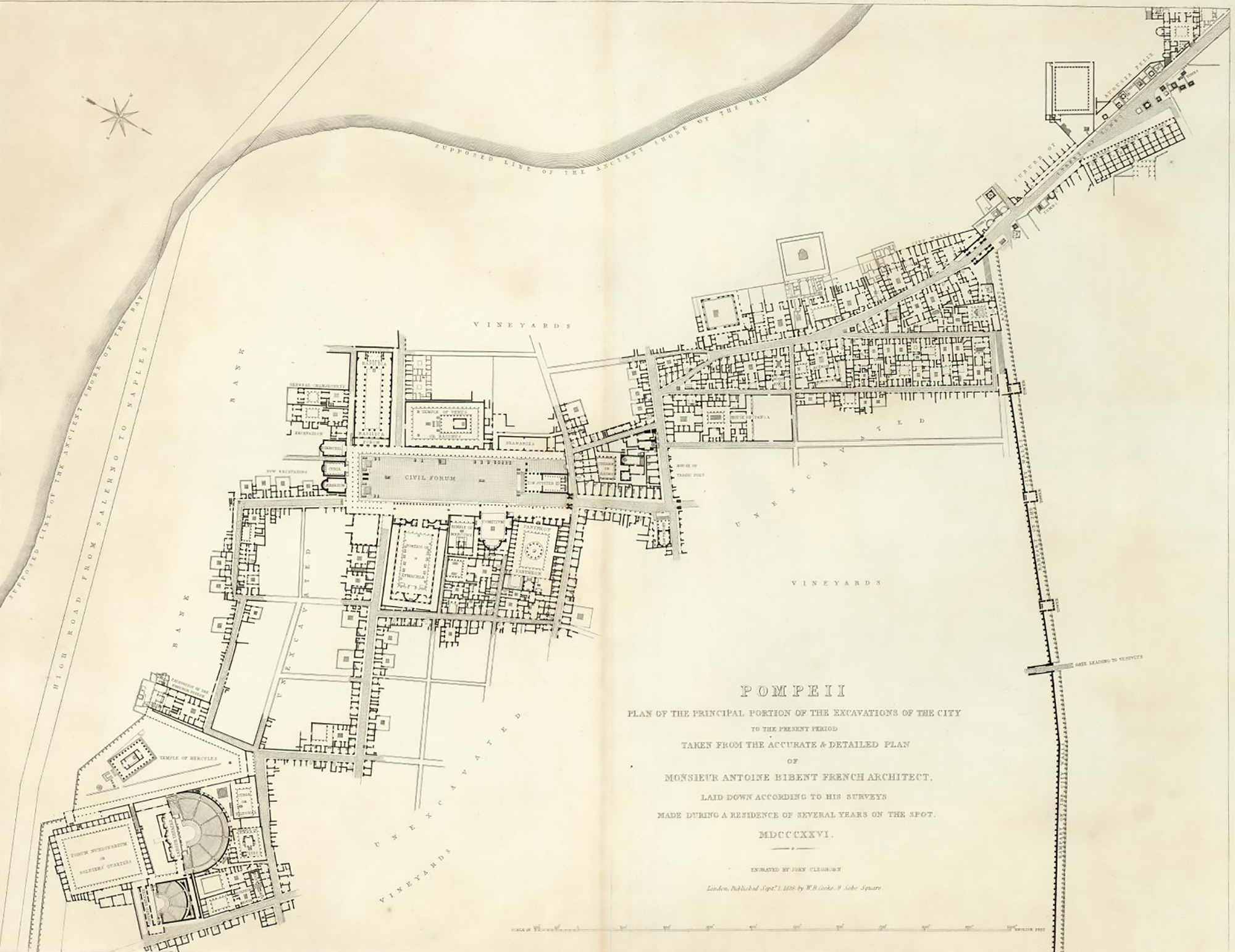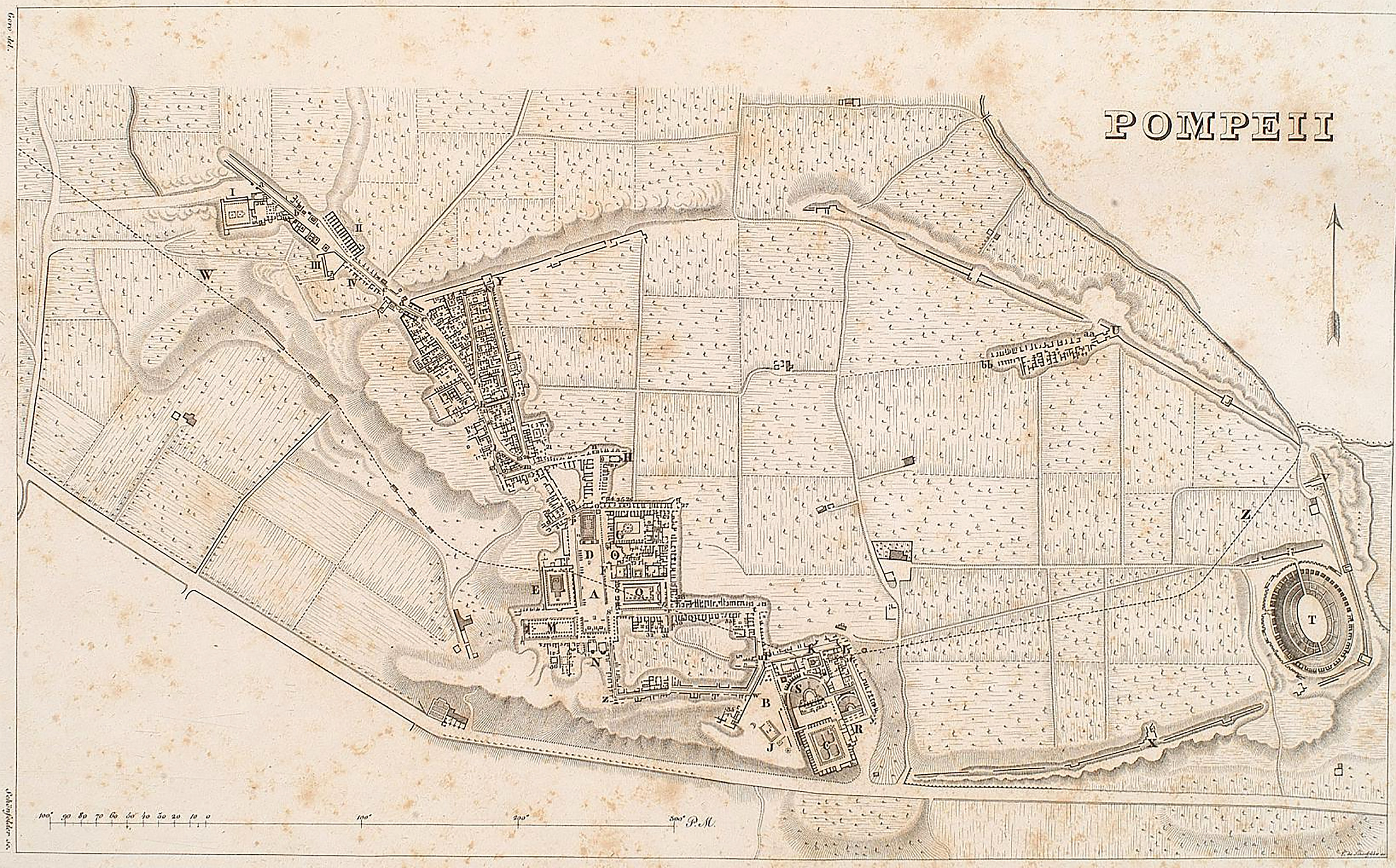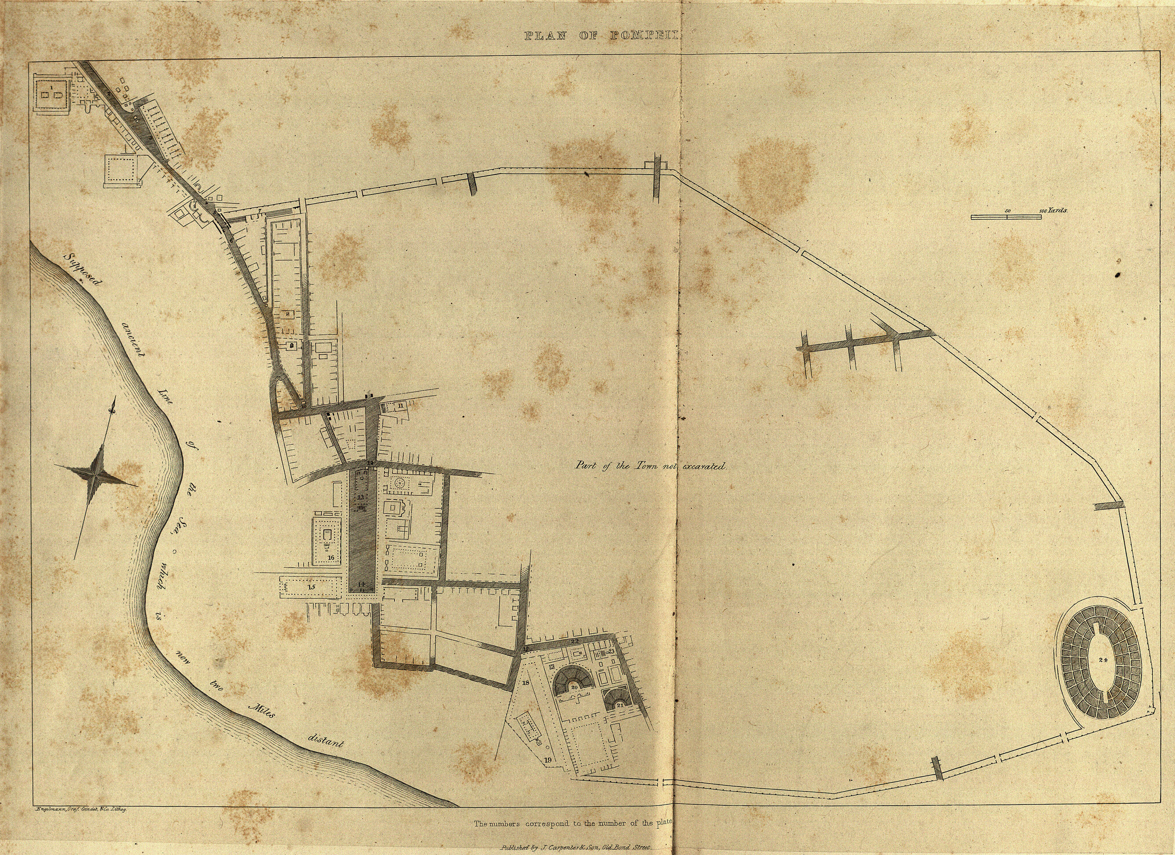 Plan of Pompeii in 1832 by Baldwin and Cradock for the Society for the Diffusion of Useful Knowledge. From Wikimedia.