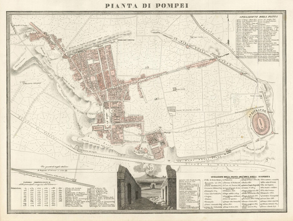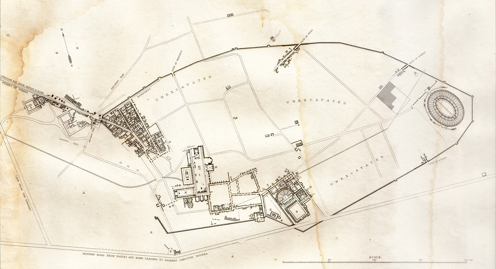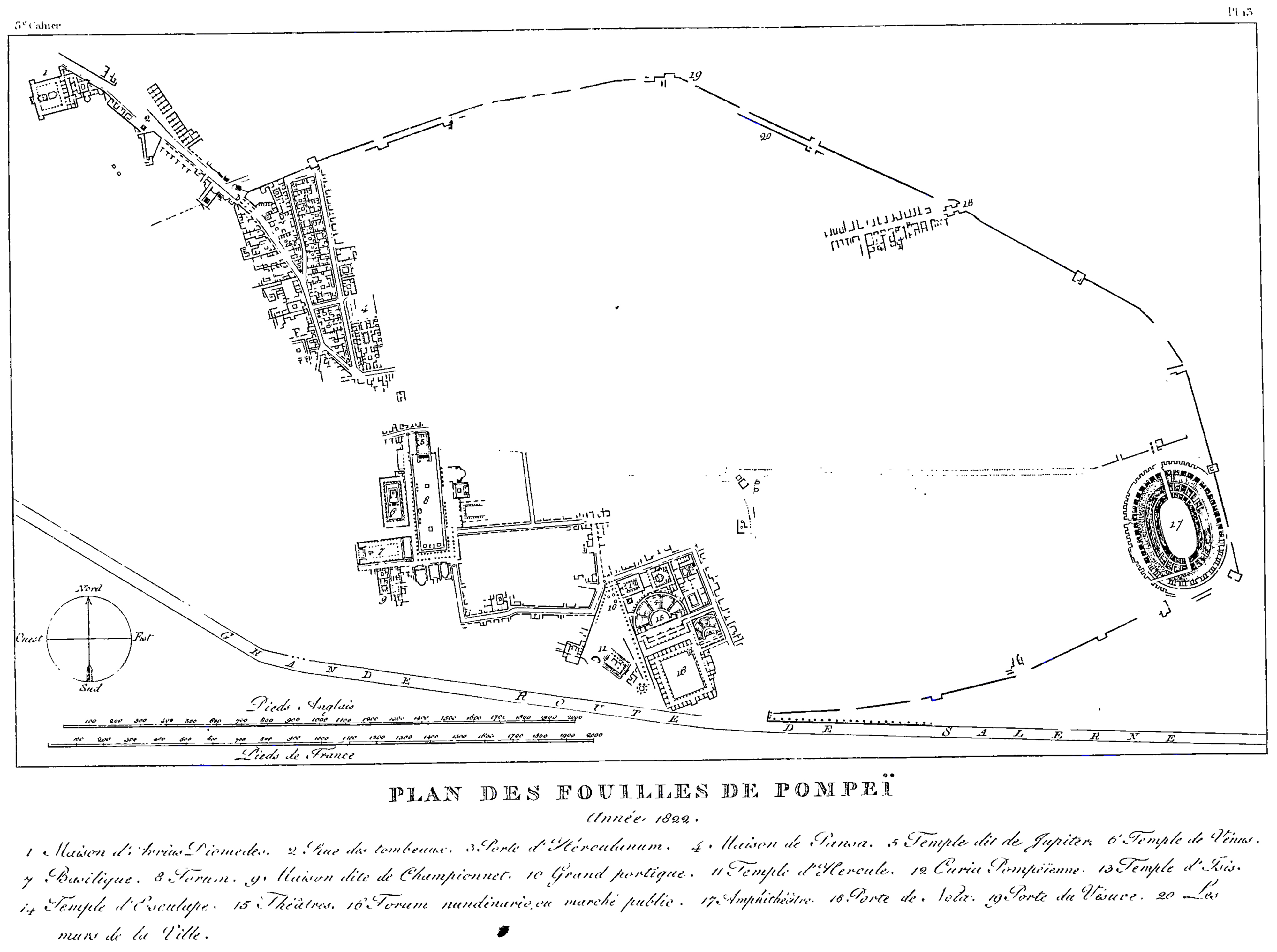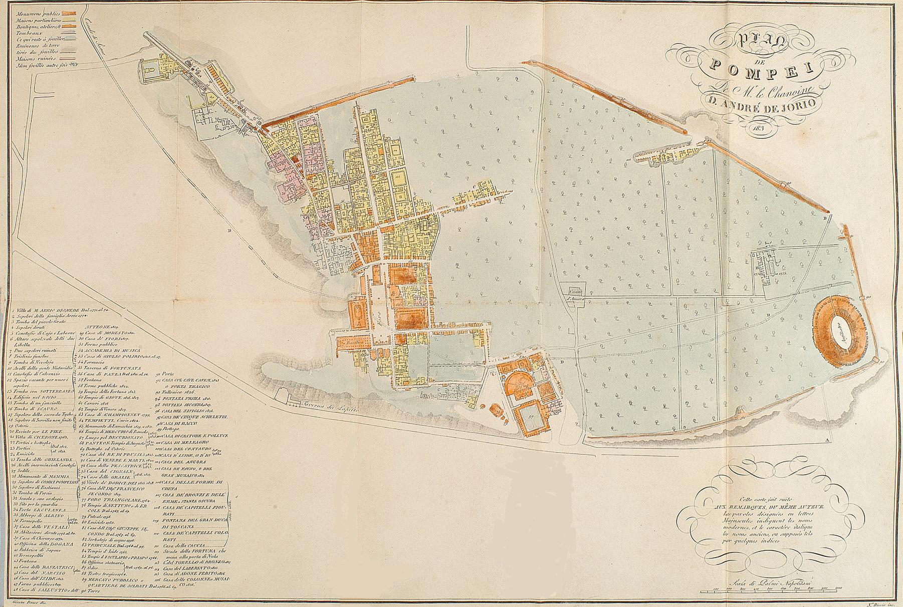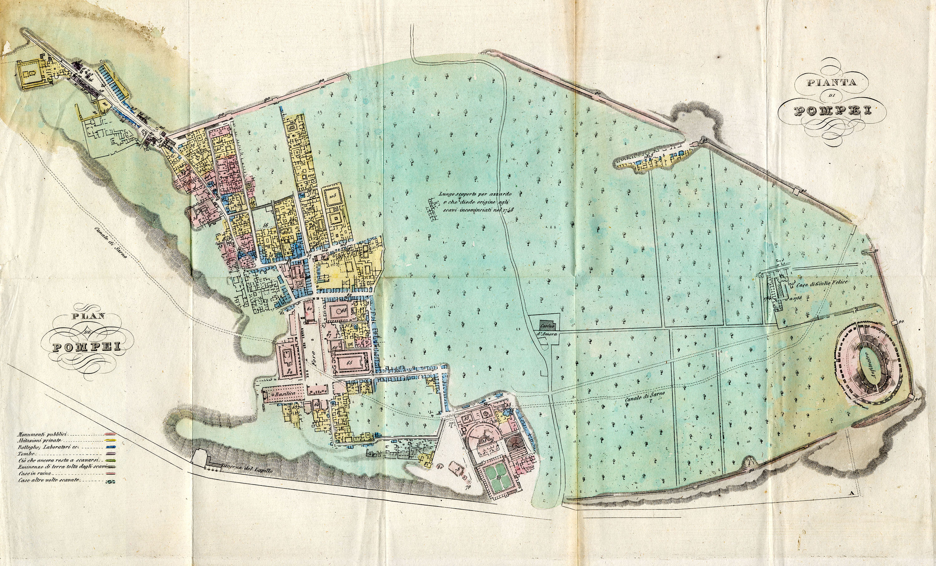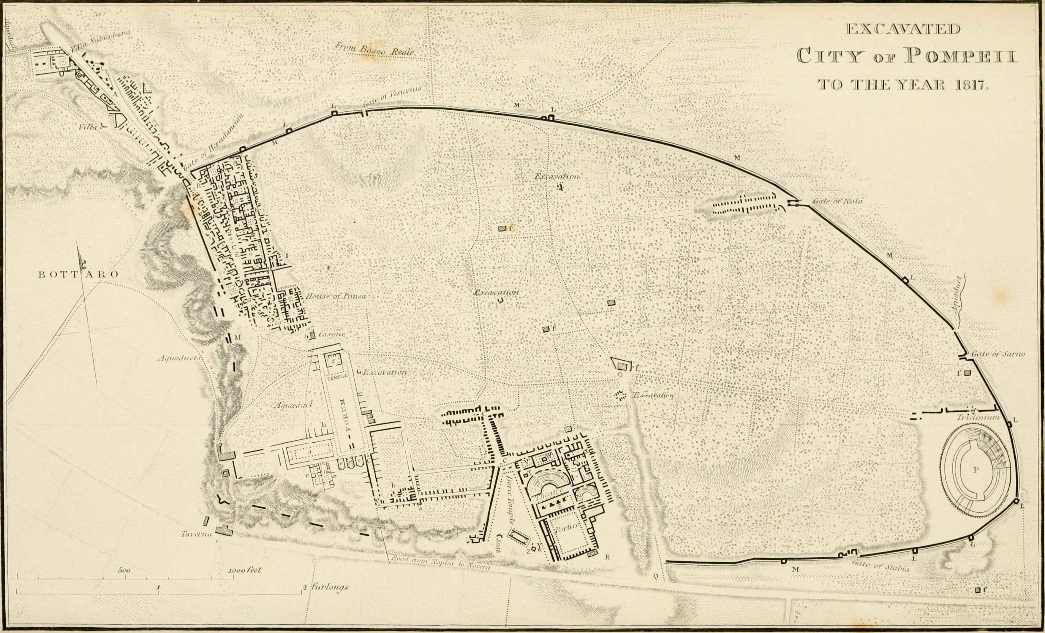 Plan of Pompeii in 1832 by Baldwin and Cradock for the Society for the Diffusion of Useful Knowledge. From Wikimedia.