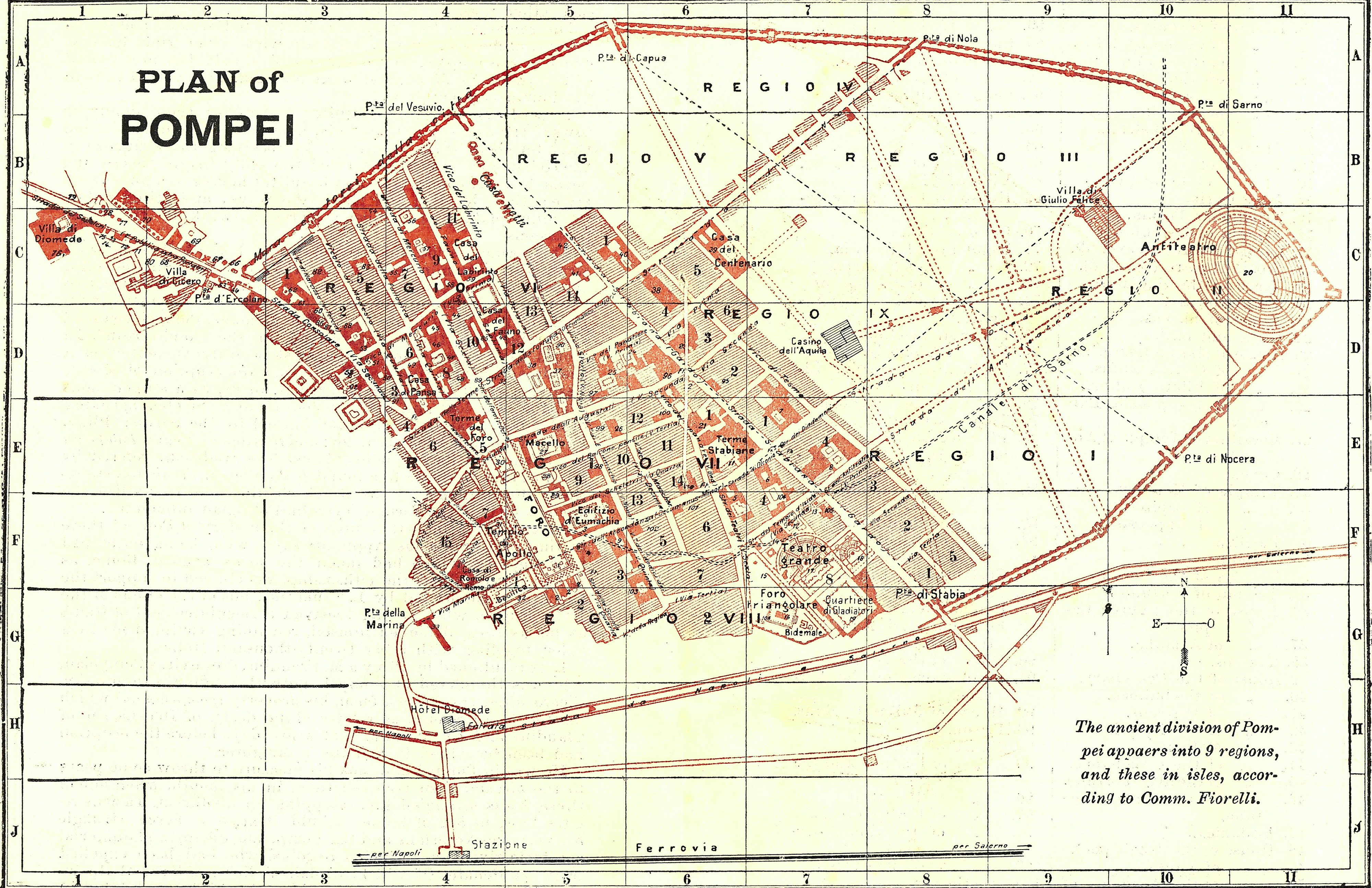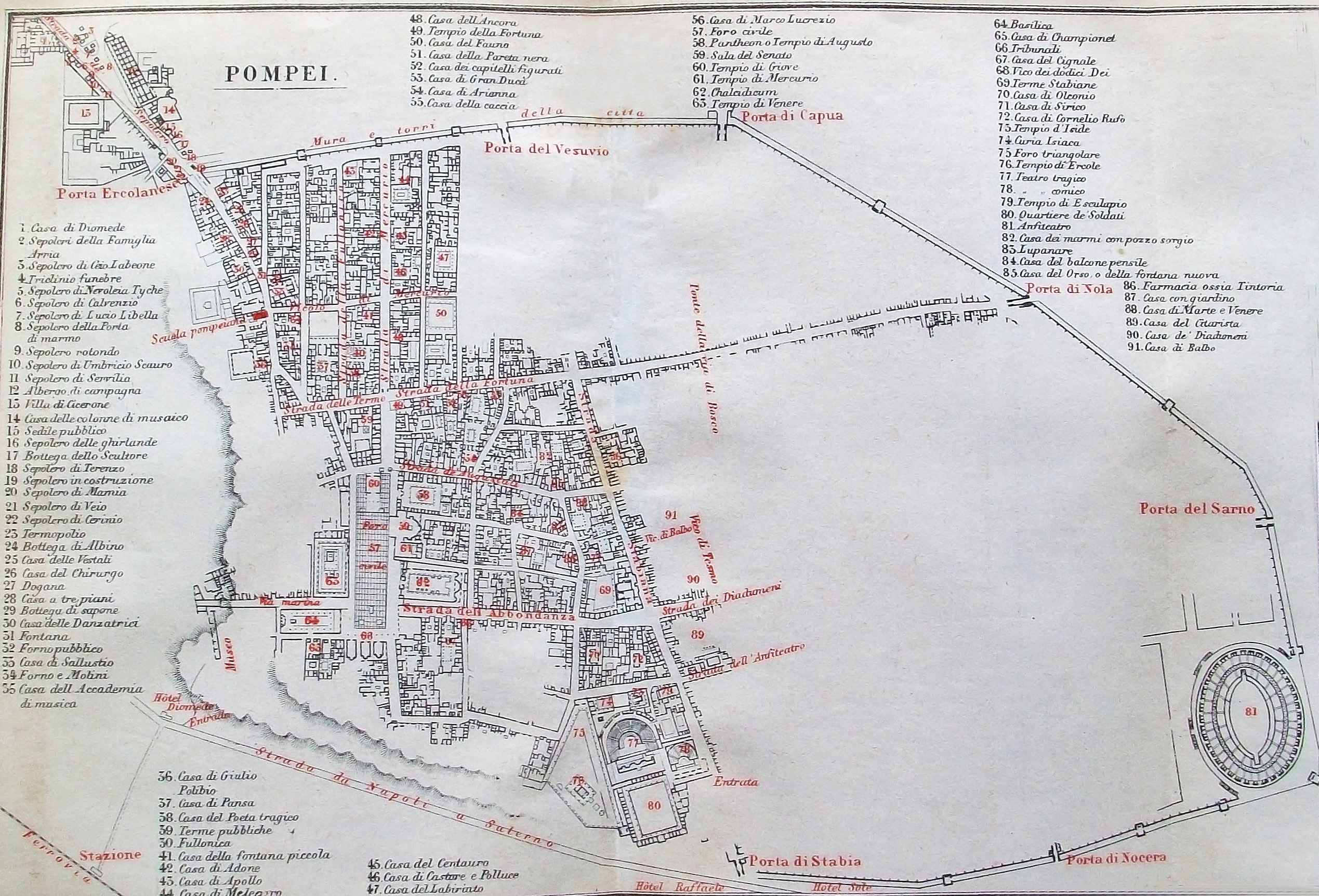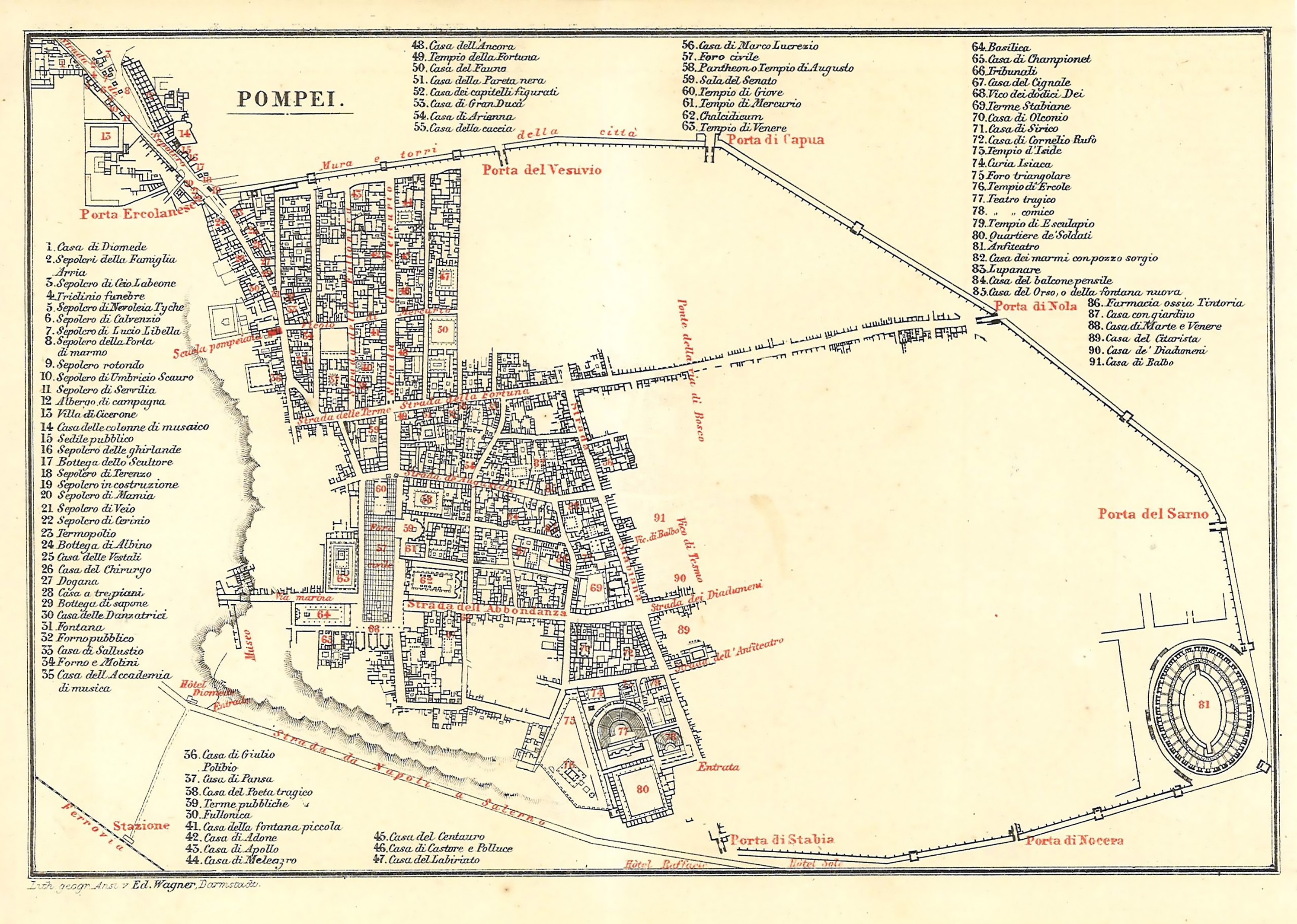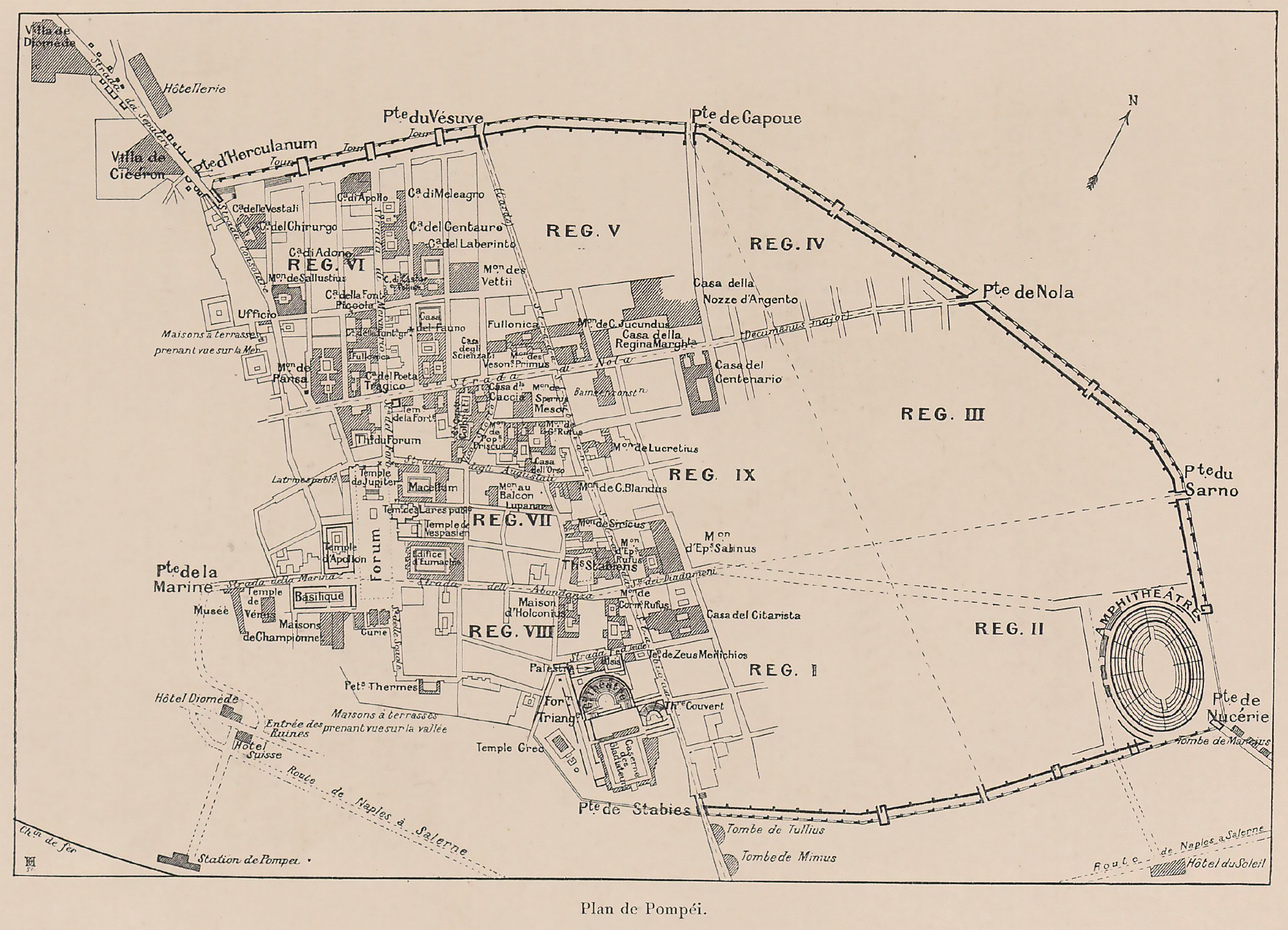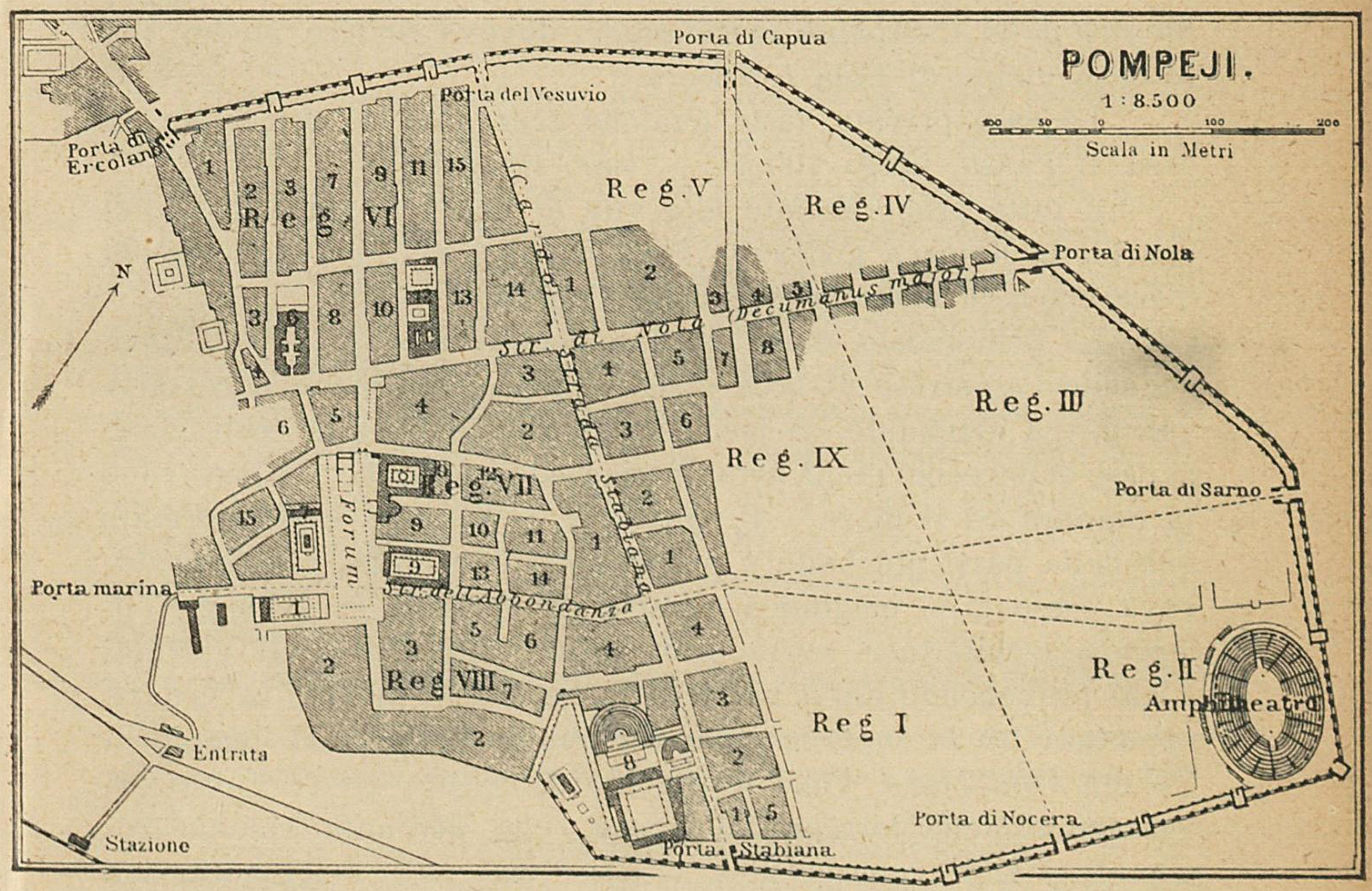 Plan of Pompeii in 1896 published in Brockhaus and Efron Encyclopedic Dictionary. Photo Wikimedia.