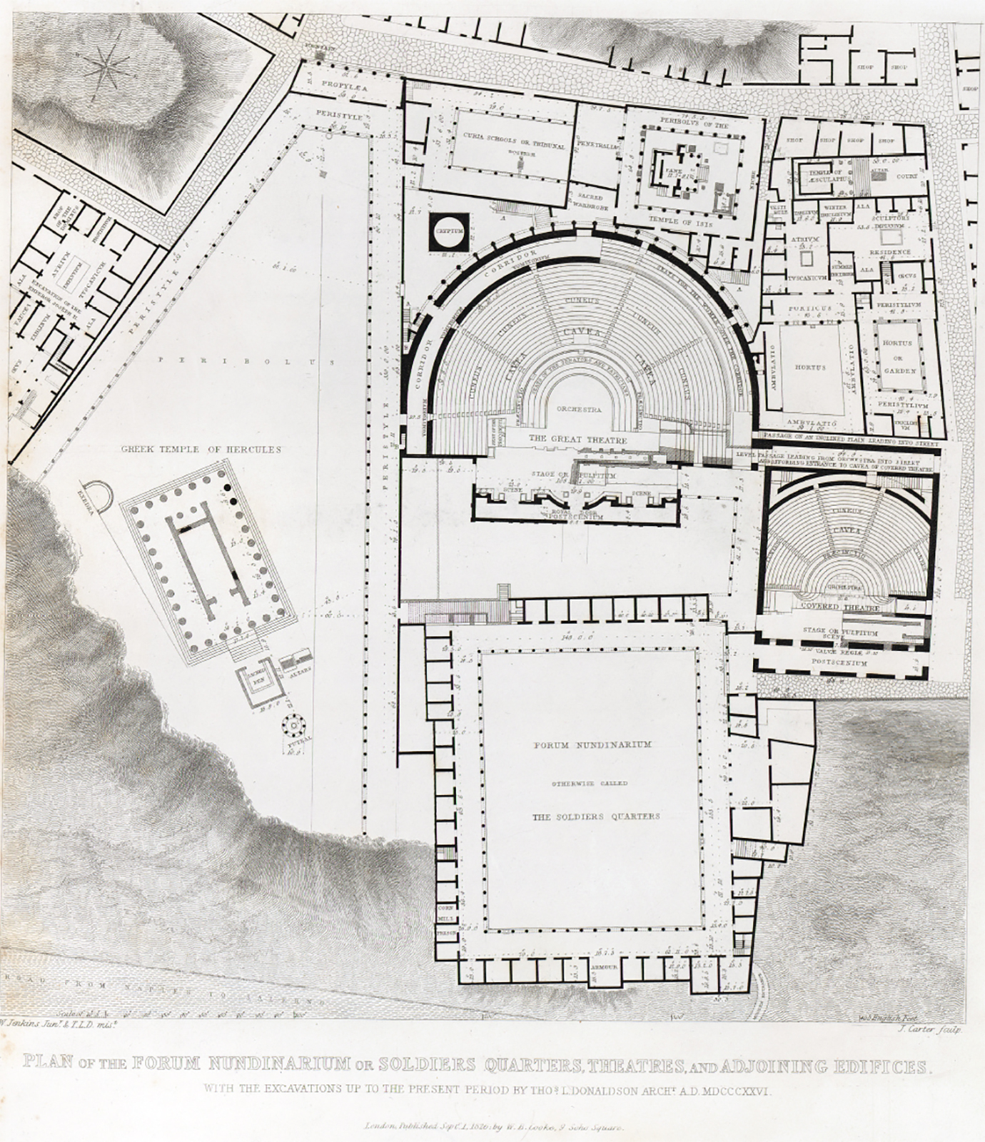 Plan of Pompeii Theatres and Triangular Forum excavations to 1825. Cooke Coburn and Donaldson, Pompeii, 1827, part 1, plate 14.