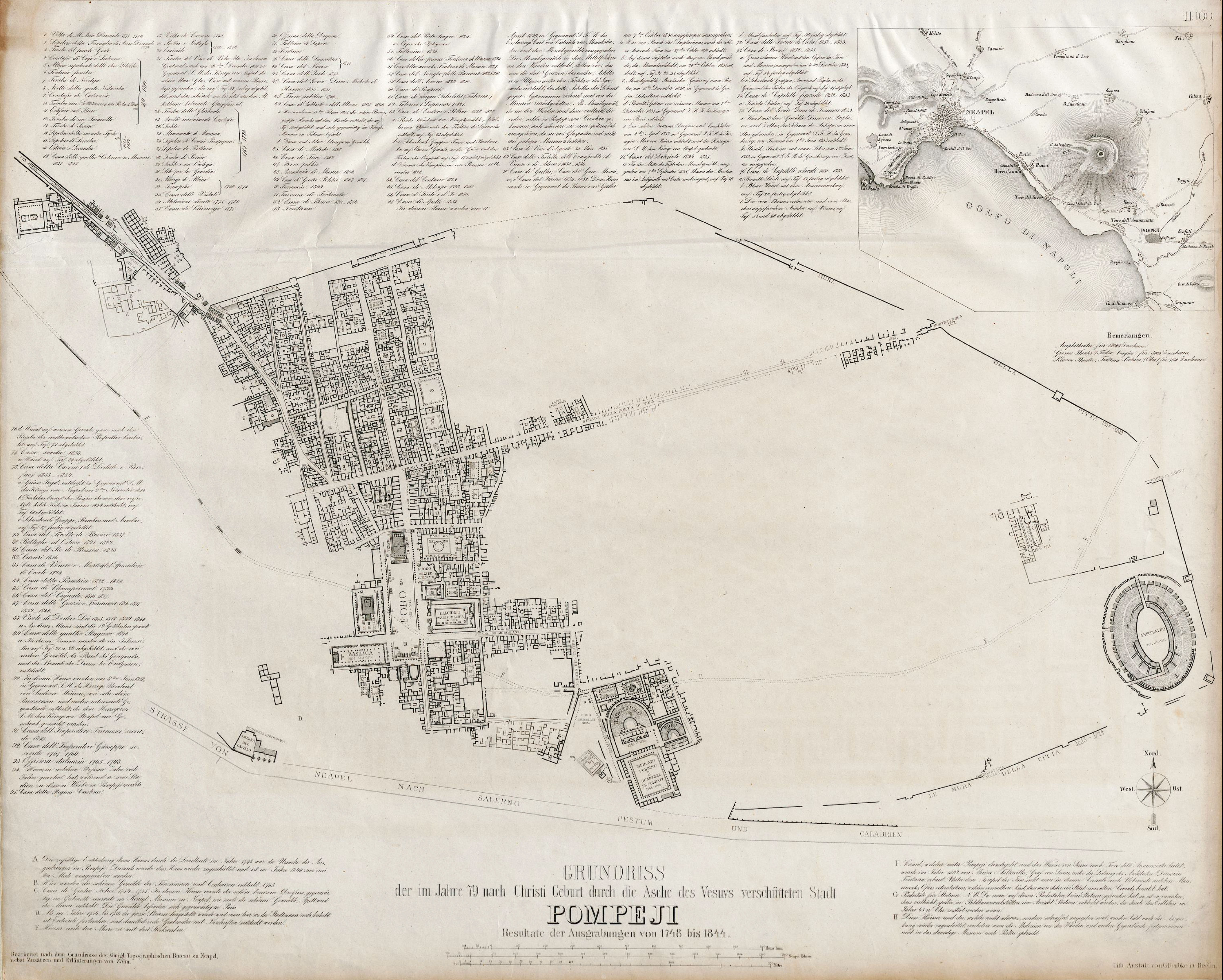 Plan of Pompeii excavations from 1754-1855 by J. G. Bach. Published by Overbeck in 1855.