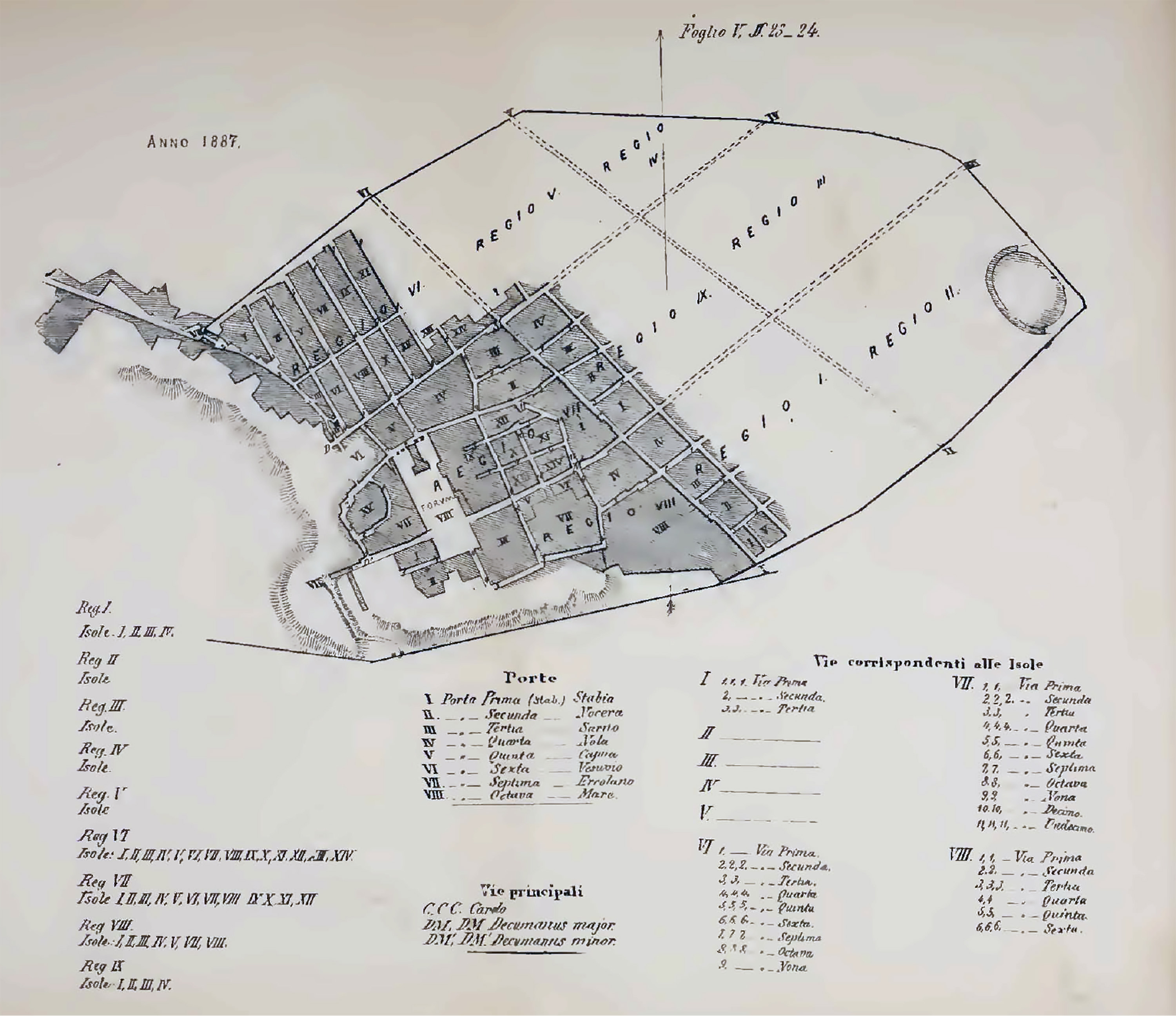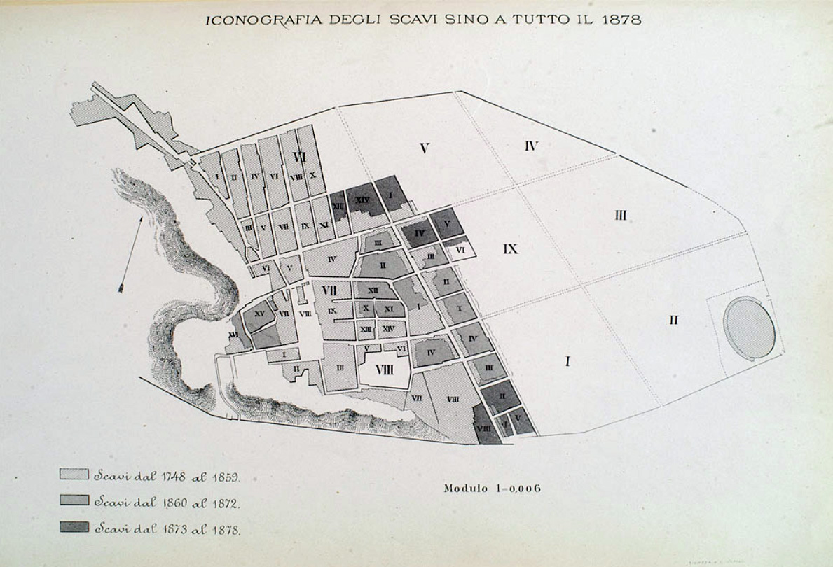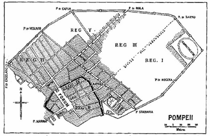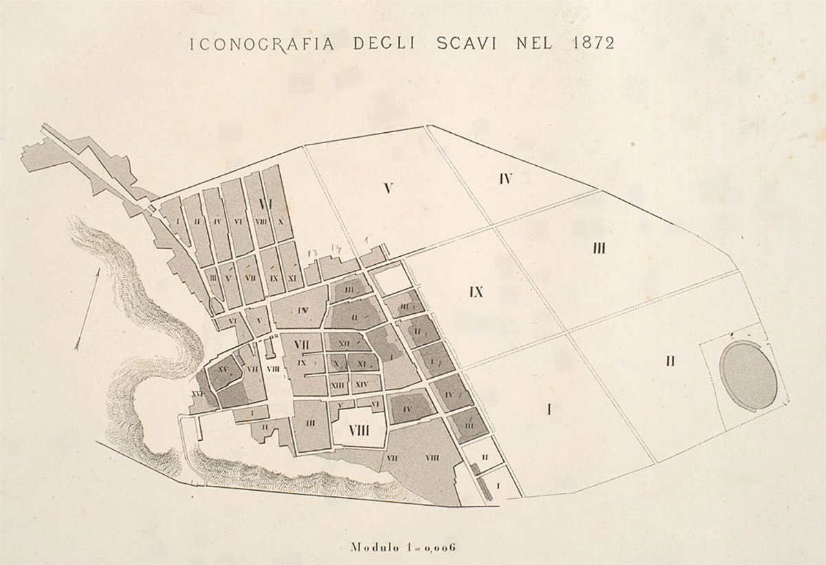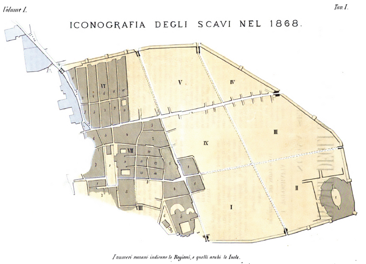 Plan of Pompeii in 1872 by Fiorelli. From Gli scavi di Pompei dal 1861 al 1872, tav. 1.