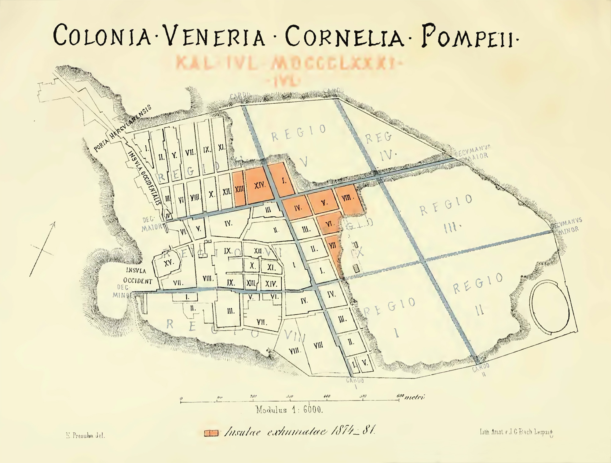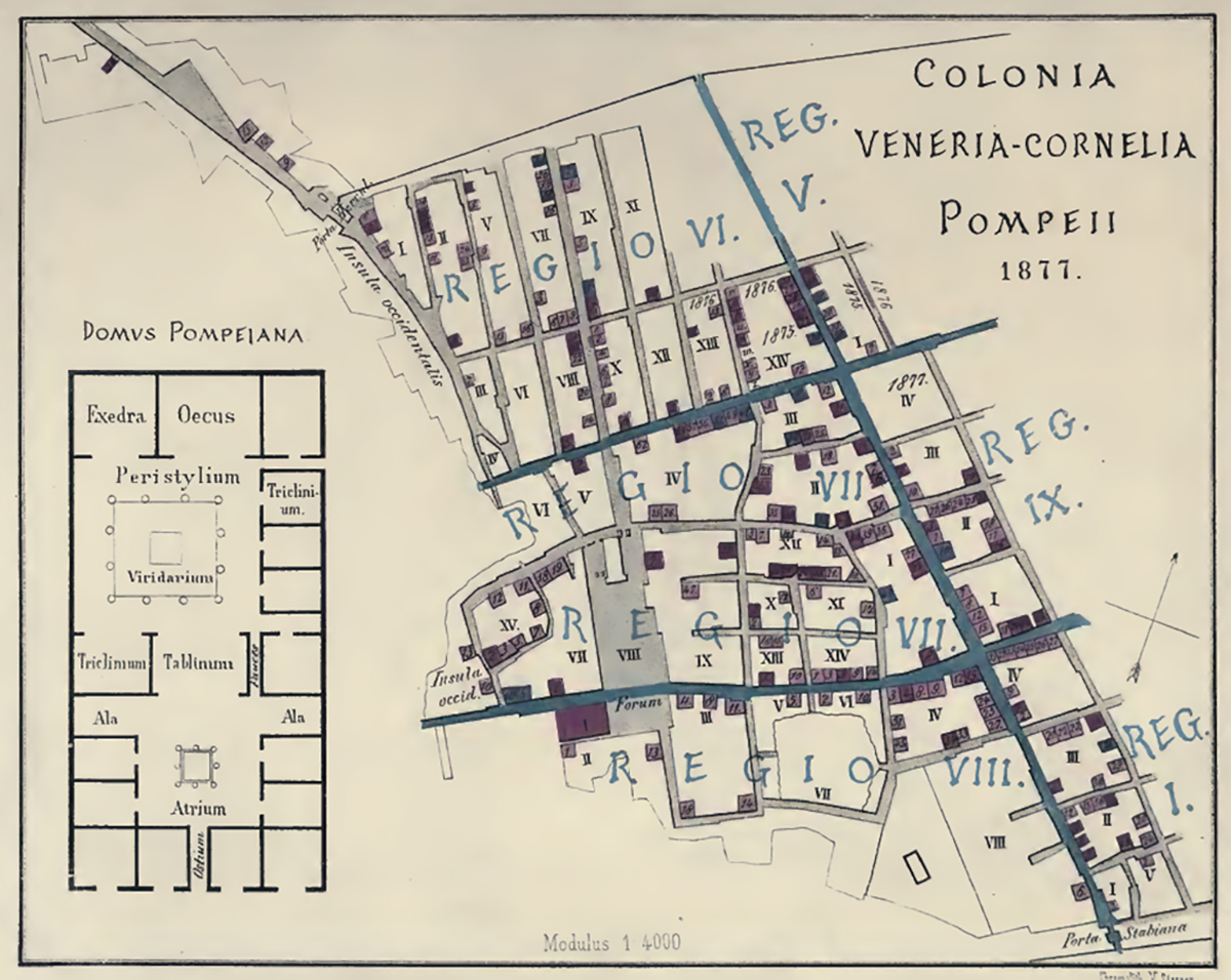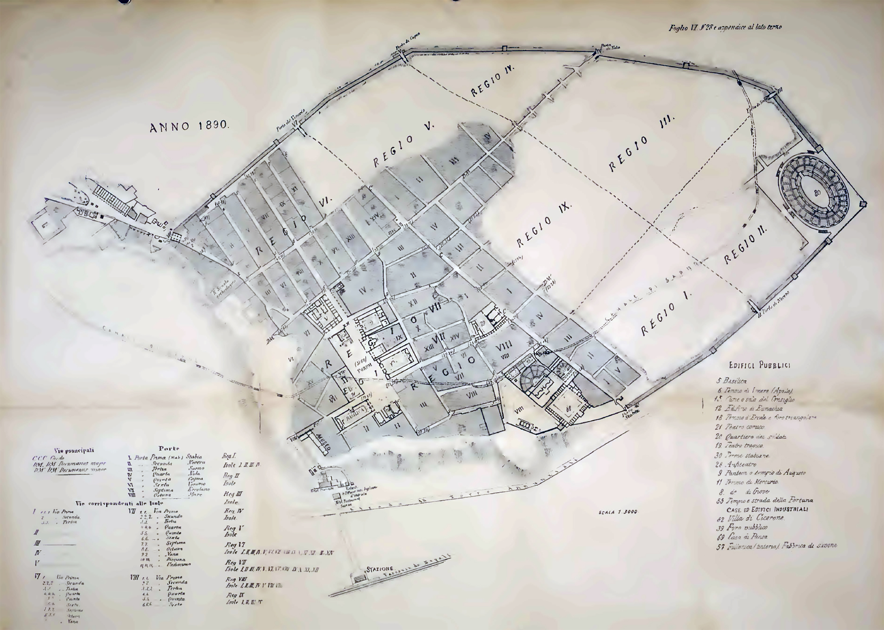 Plan of Pompeii in 1872 by Fiorelli. From Gli scavi di Pompei dal 1861 al 1872, tav. 1.