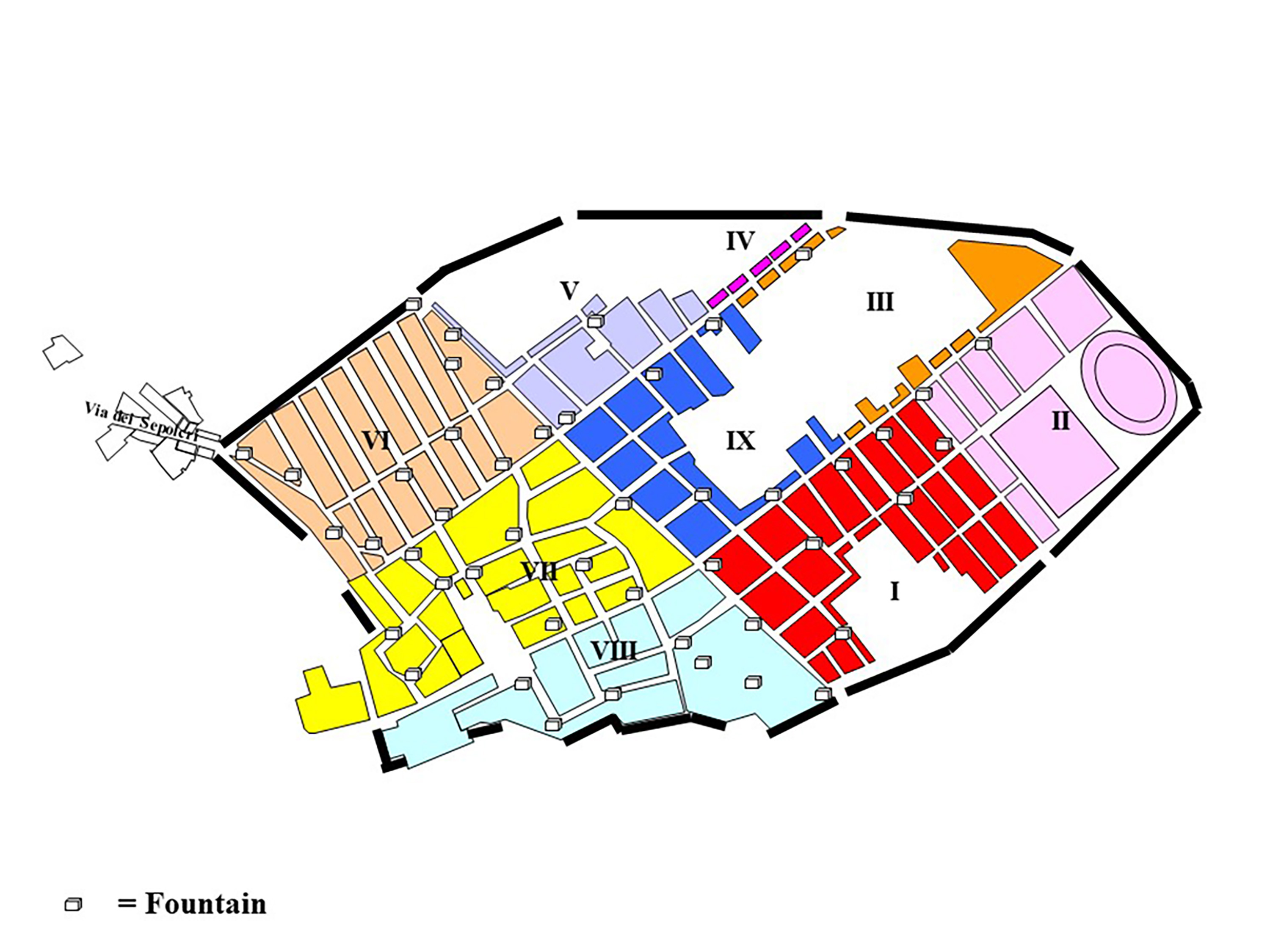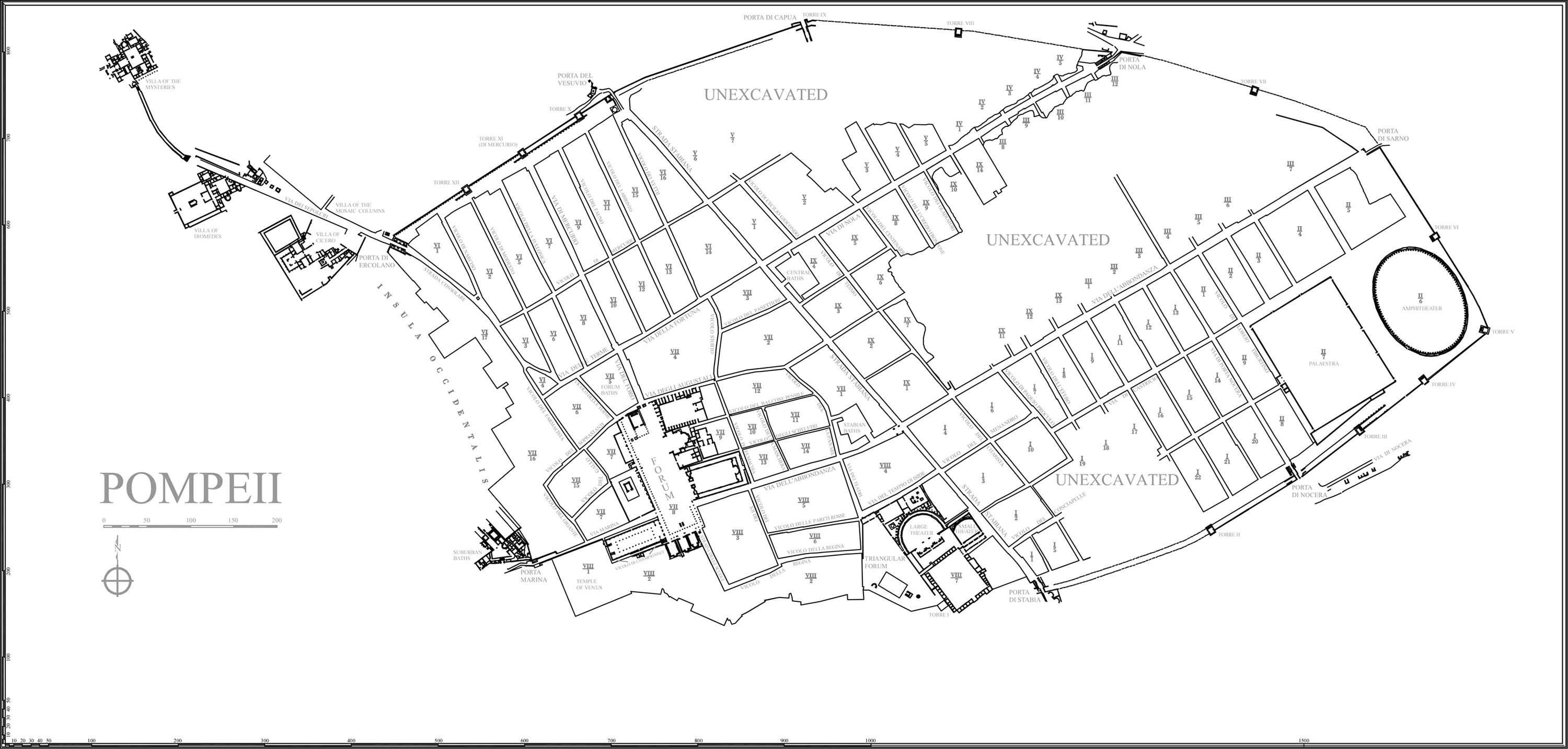 Plan of Pompeii in 2007 showing all Pompeii building entrances. Photo Courtesy of John Dobbins and Pedar Foss, World of Pompeii, DVD.