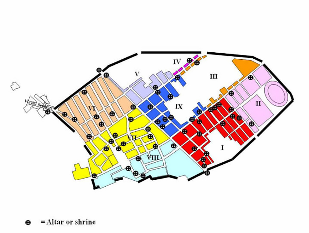 Comprehensive pompeiiinpictures plan of street altars and shrines in Pompeii.