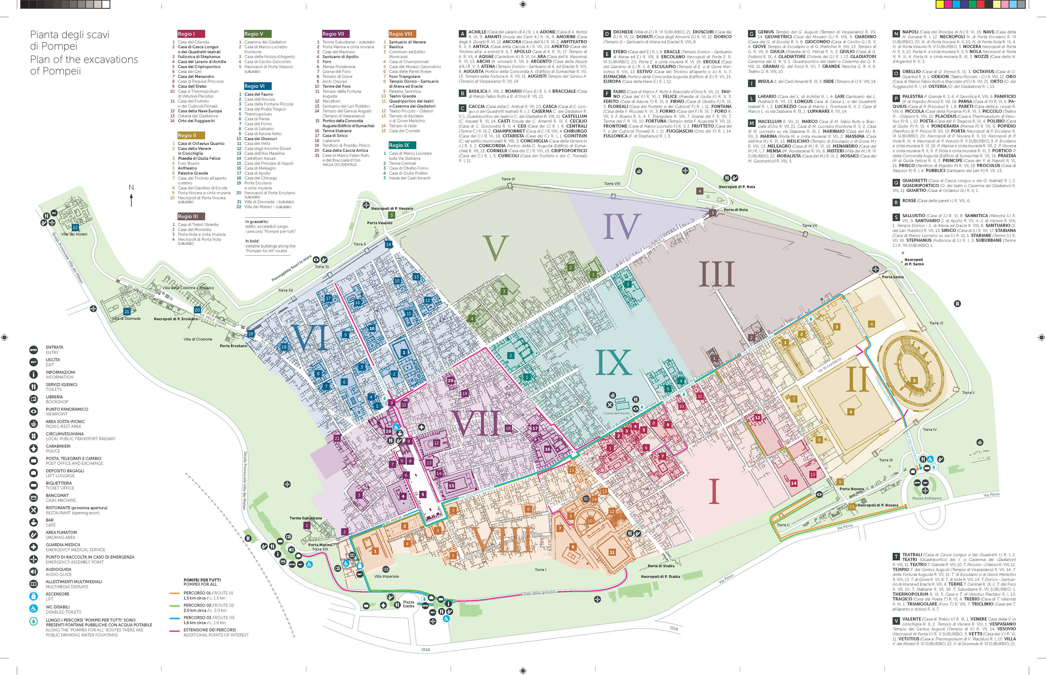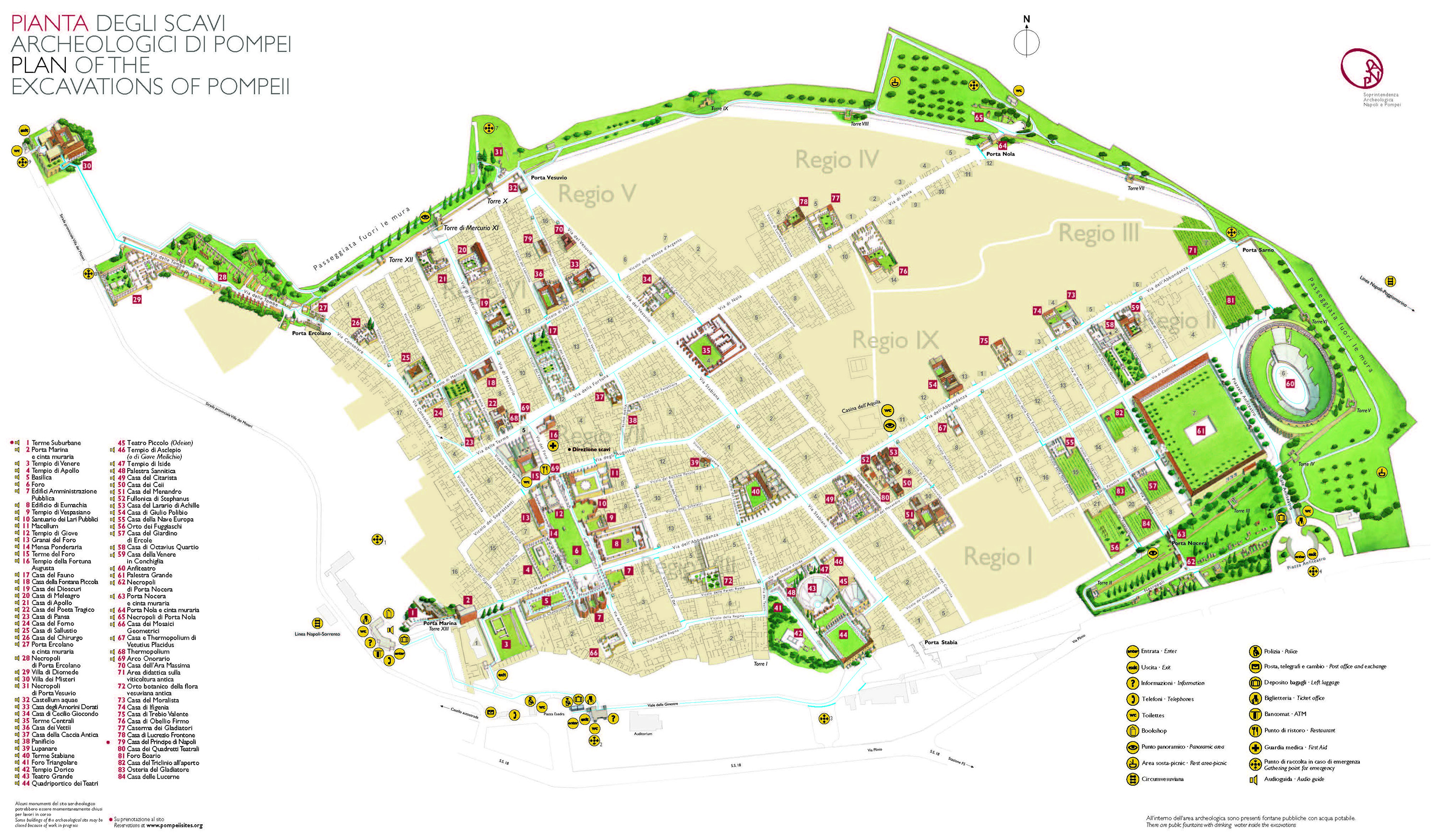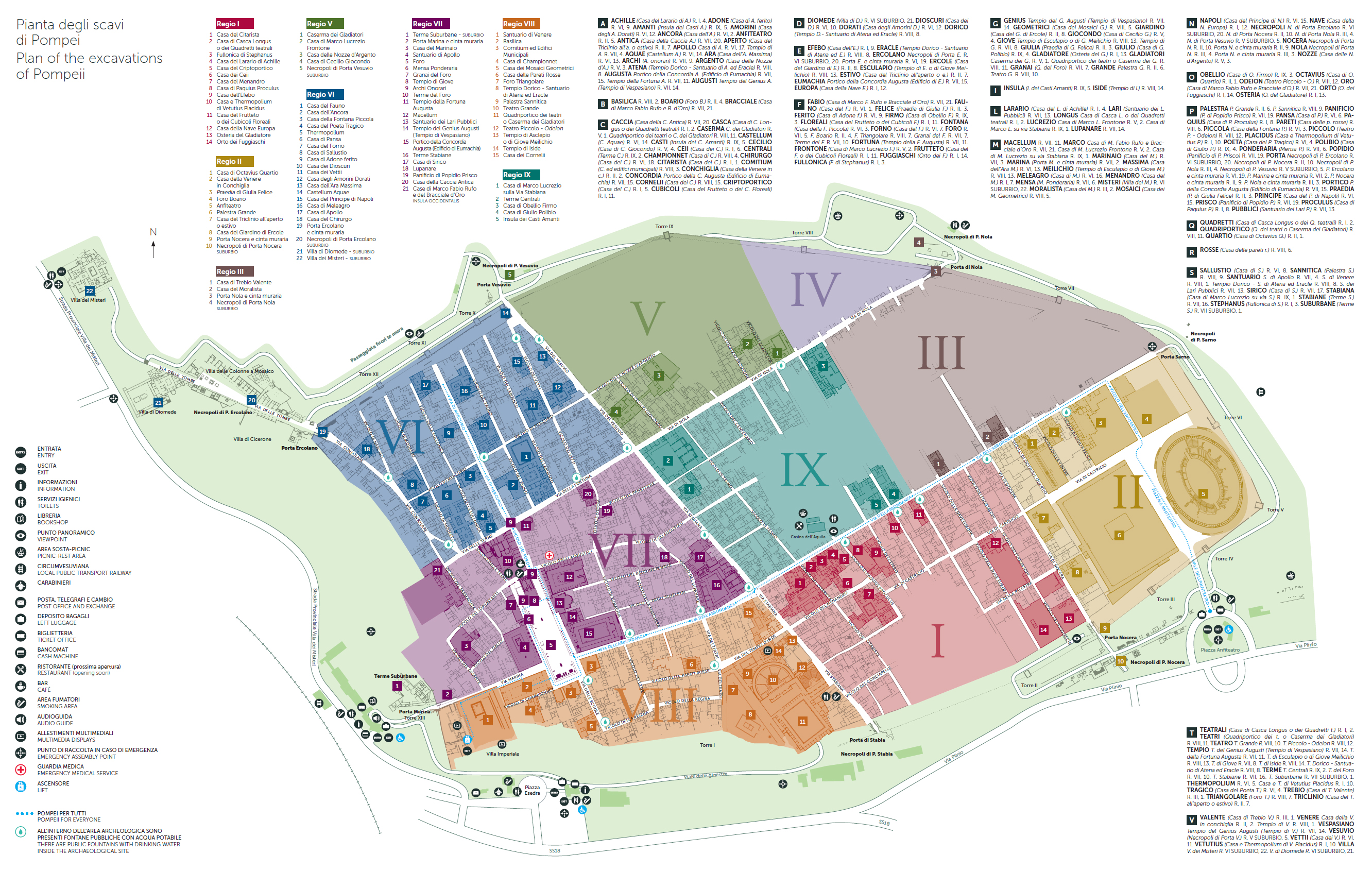 2014 Soprintendenza Pompeii tourist plan showing the main buildings. Not all of these are currently open to the public.