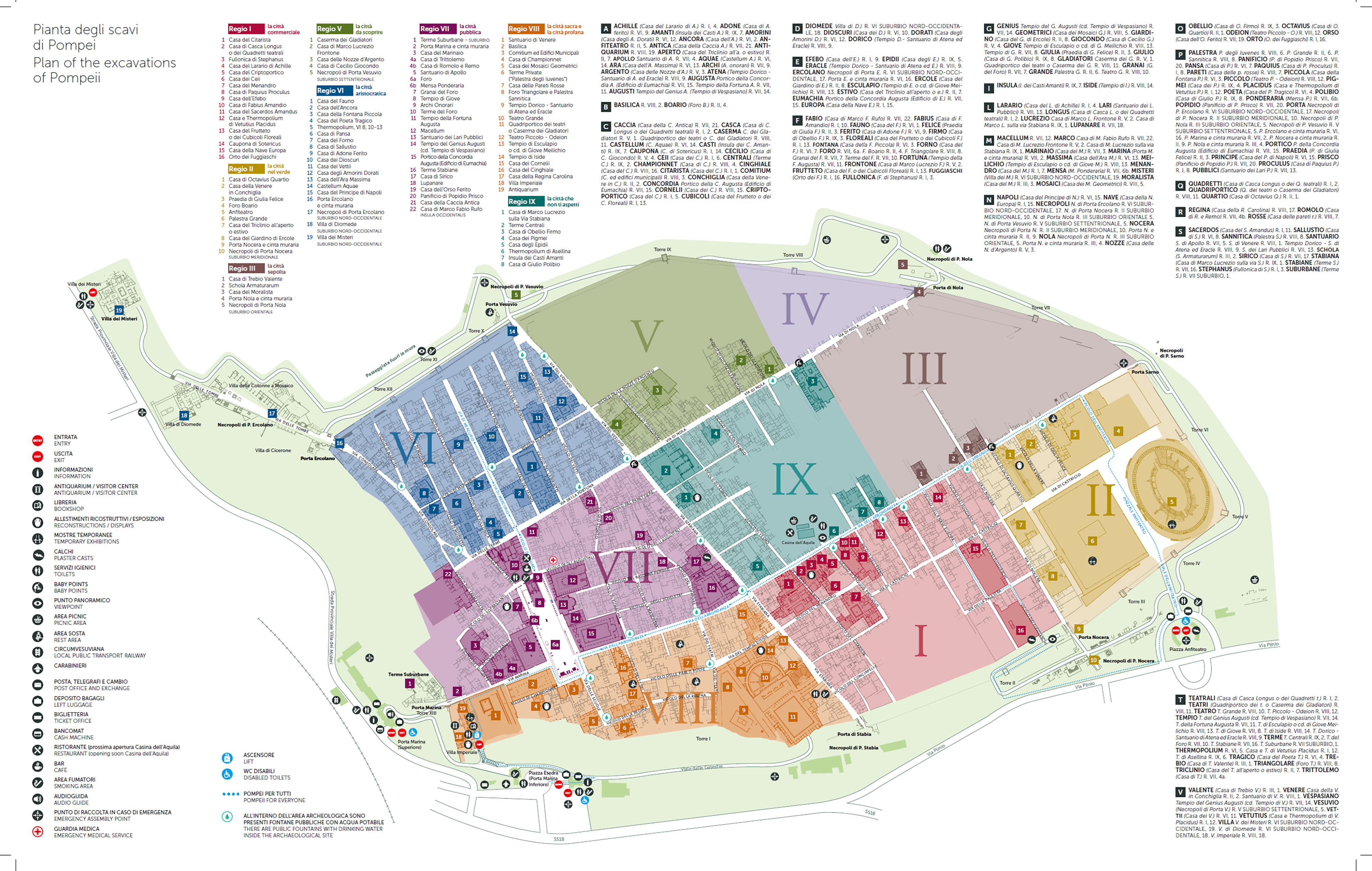 2019 Parco Archeologico di Pompeii tourist plan showing the main buildings. Not all of these are currently open to the public.